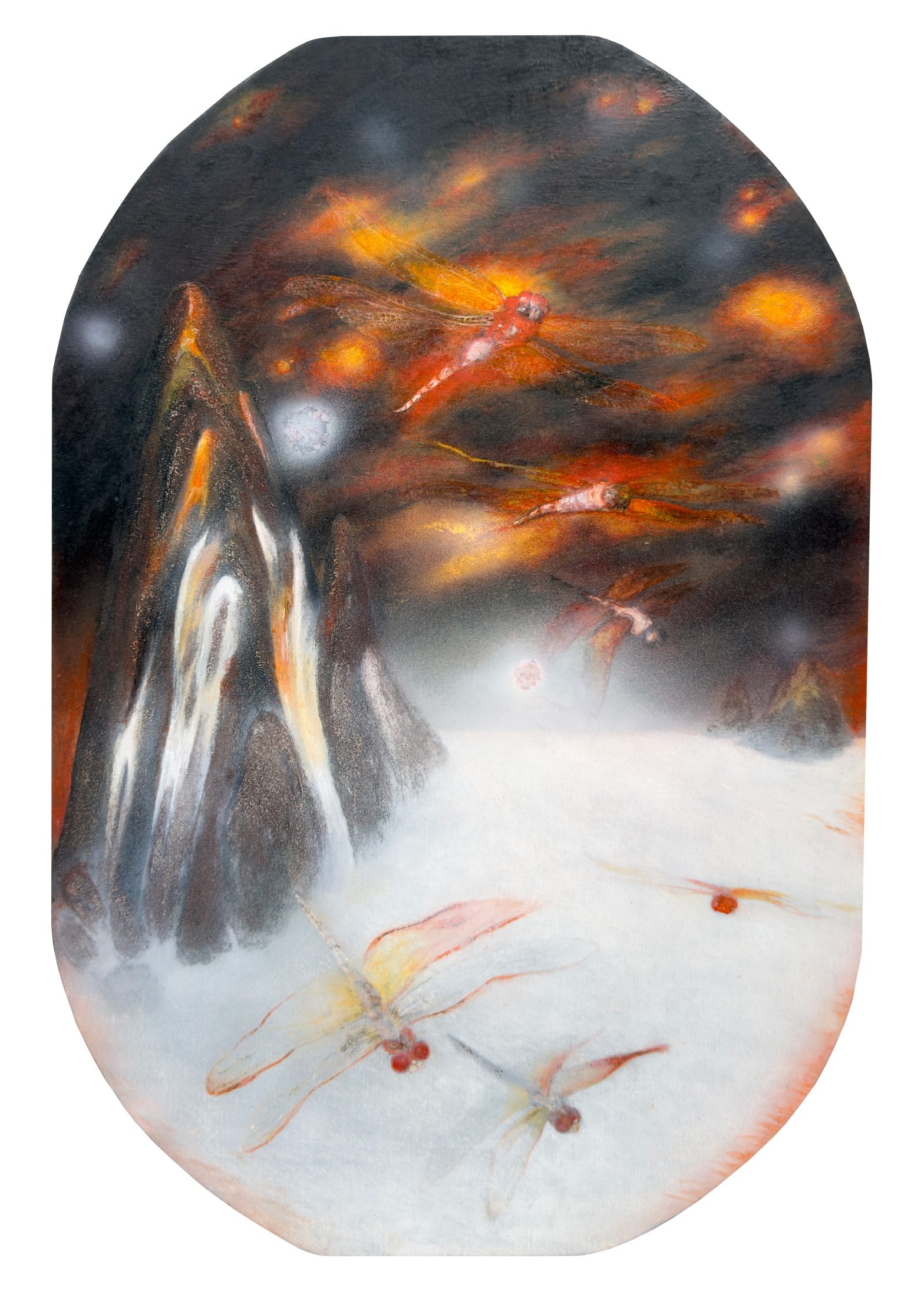 Rina He’s practice integrates modern ink paintings with mixed media creations. For this exhibition, she has chosen various organisms as her subjects. By capturing their forms of life and unique habits, she reflects on the cyclical nature of life and the ideology of existentialism.