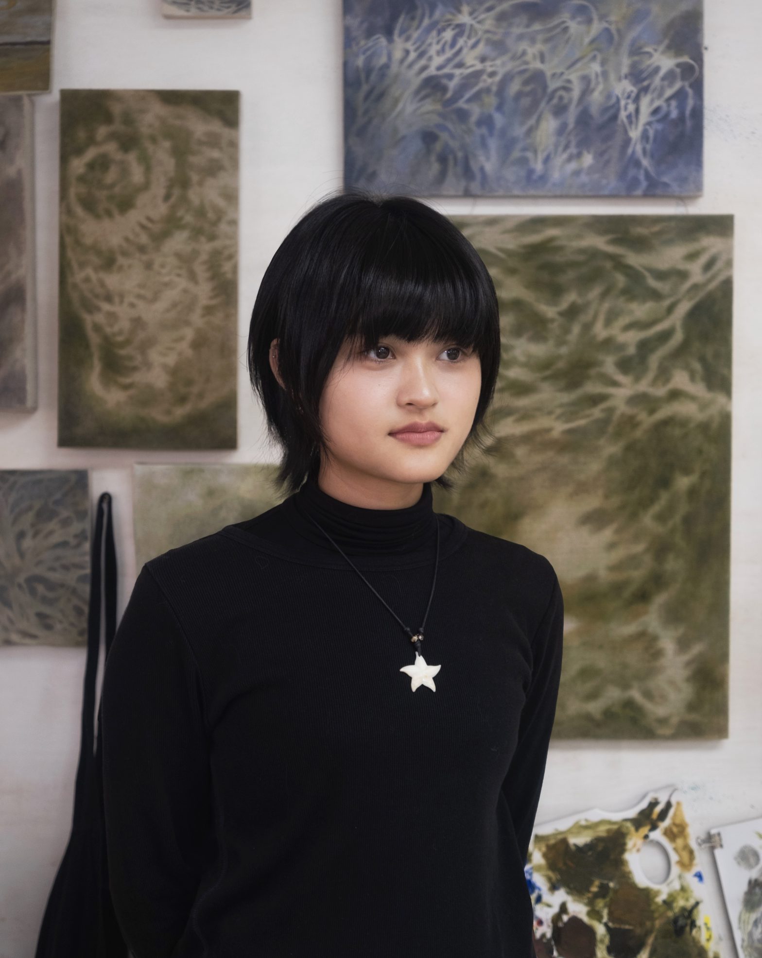 Arlie is largely inspired by her countryside journeys, with each painting reflecting different locations. Painted on coarse linen canvas with ambiguous organic lines and shapes, she highlights the small corners observed in the outskirts and outlying islands of Hong Kong.